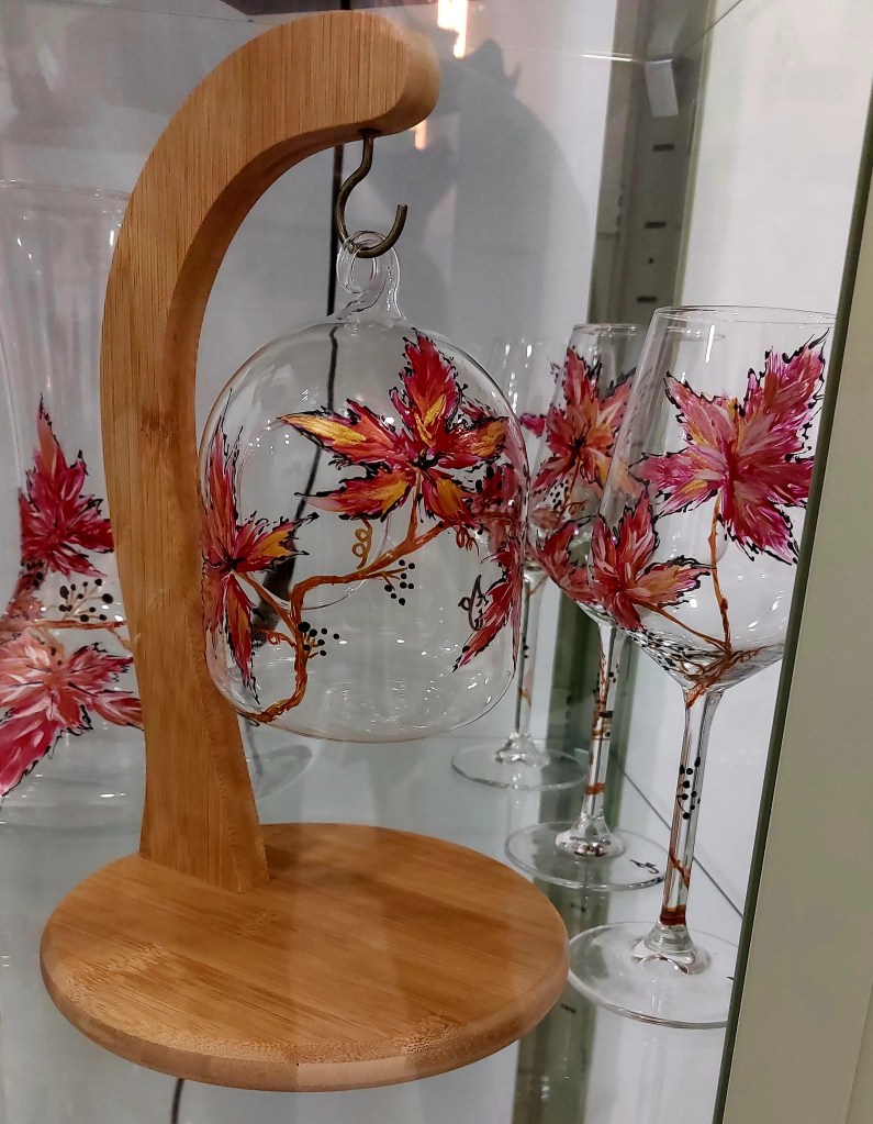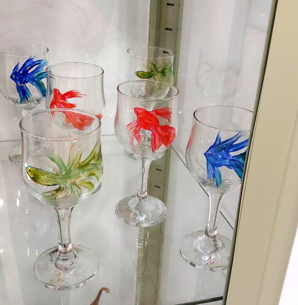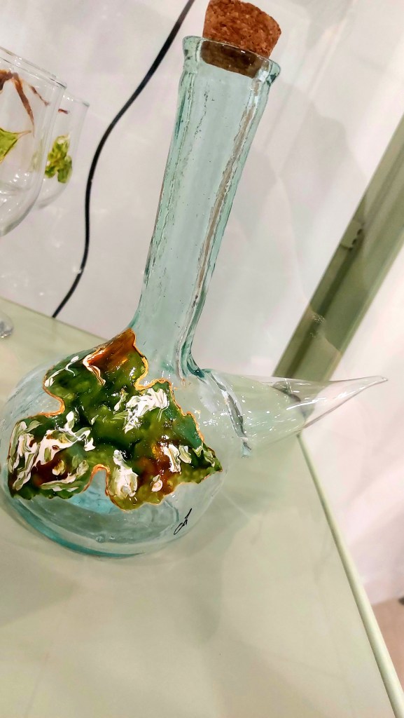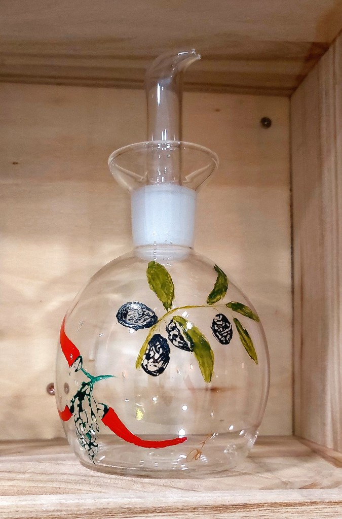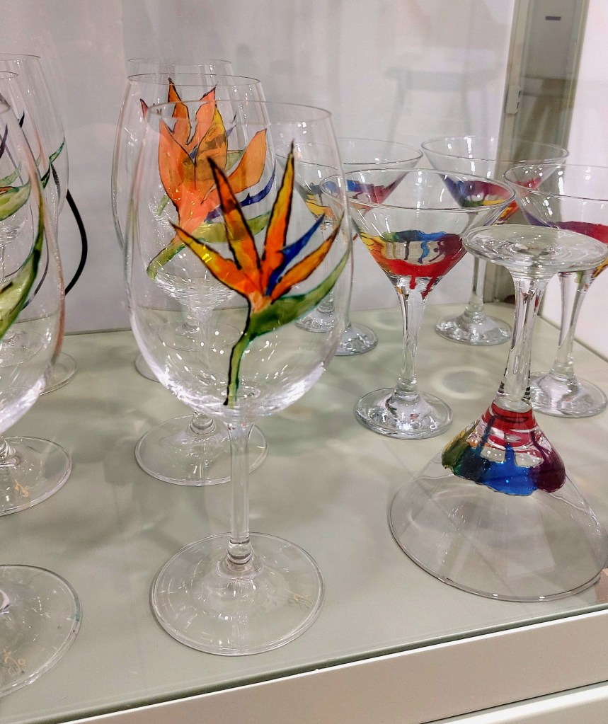En tienda encontraras diferentes articulos de cristaleria pintados como copas, porrón, decantadores, jarras para agua o aceiteras. Estos articulos son totalmente utilizables en la vida de todos los días.